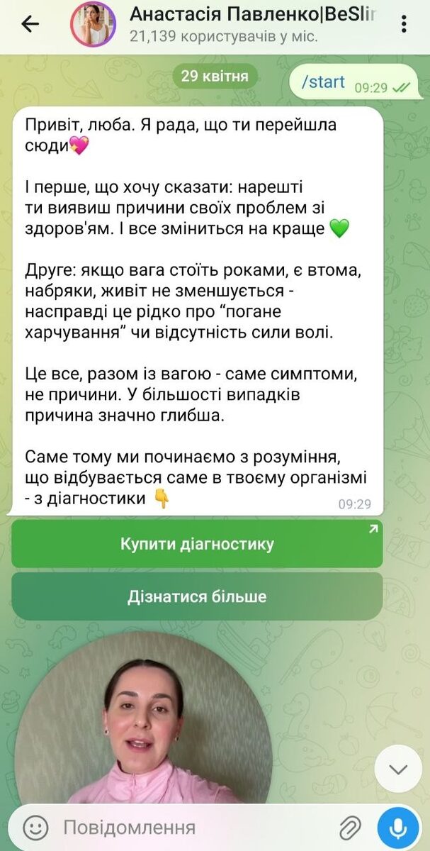 У боті ви можете або одразу купити за допомогою кнопки "Купити діагностику" та заодно забрати обіцяні подарунки, або дізнатися деталі та прочитати відповіді на питання за кнопкою "Дізнатися більше".